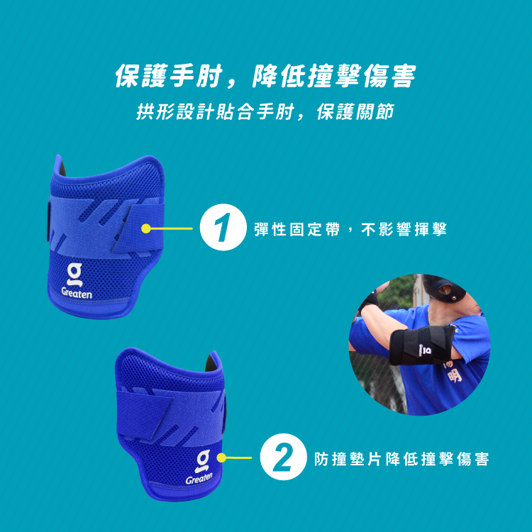 🔹棒球打擊時,保護手肘降低撞擊傷害